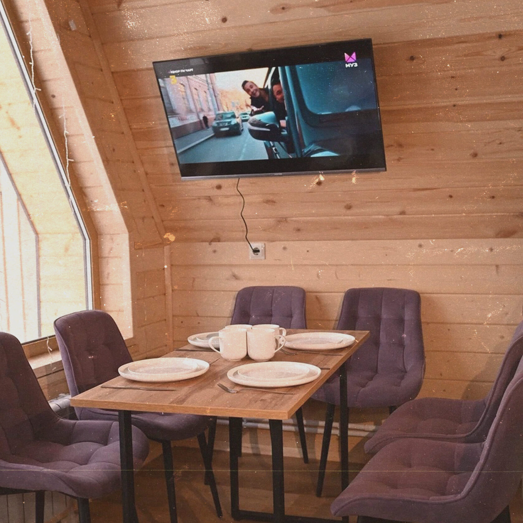 В домиках нет кухни и плиты — отдых должен быть отдыхом. Но у вас есть свой мангал, мини-бар, чайник и вся атмосфера для вкусного вечера