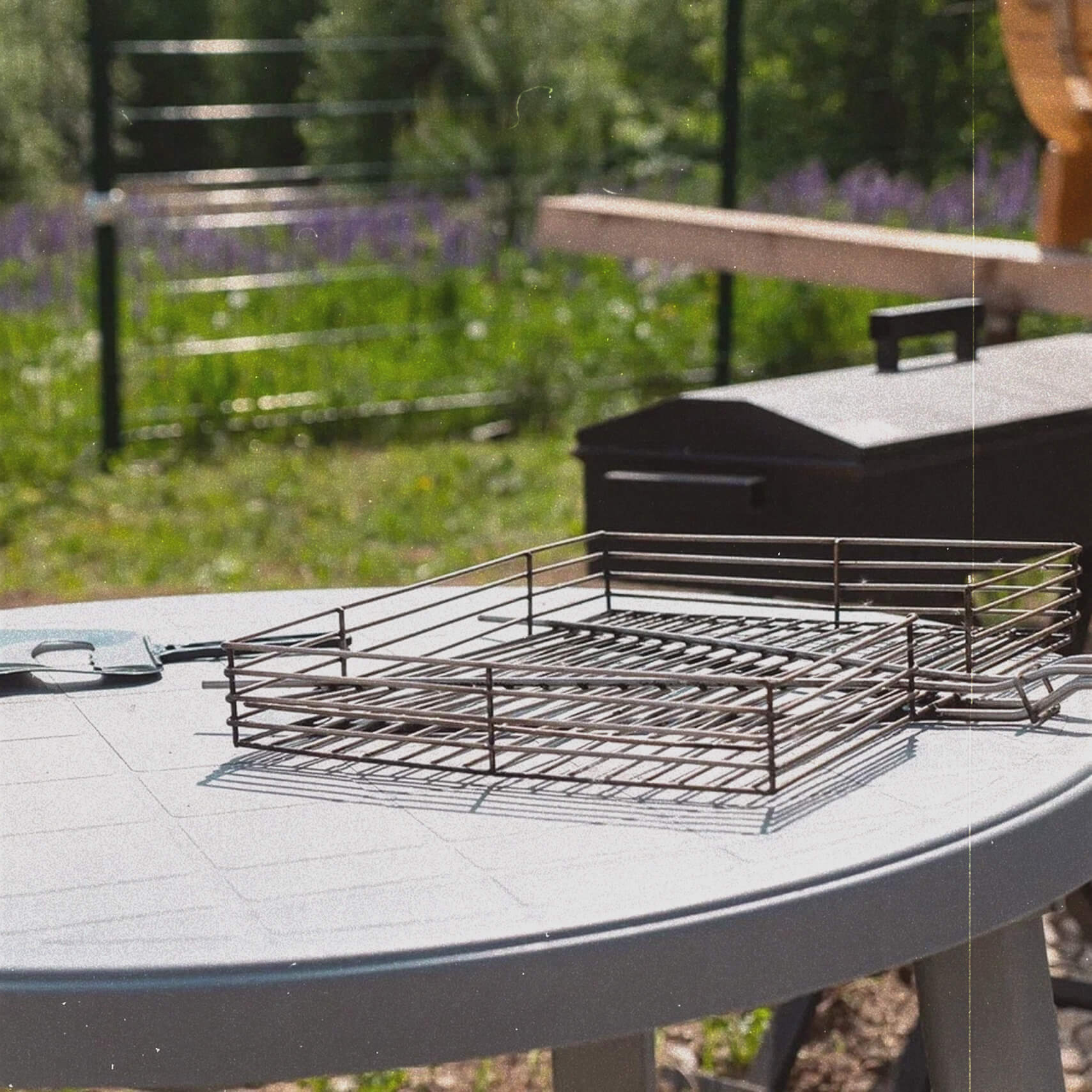 У каждого домика свой мангал. Решётка входит в стоимость, угли и розжиг можно купить у нас
